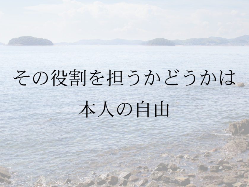 私はその場その場で望んだ通りの役割を担い、そのように扱われることにはこだわるが、全ての場所で同じように扱われることへのこだわりはない。 …