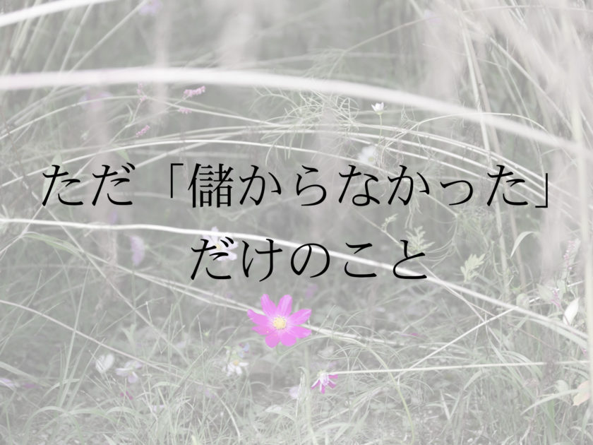 1610月, 20232023-10-15 Categoriesつぶやき ライフスタイル・働き方 ただ「儲からなかった」だけのこと By writing-beauty 金でロマンは買えない。 … 続きを読むただ「儲からなかった」だけのこと